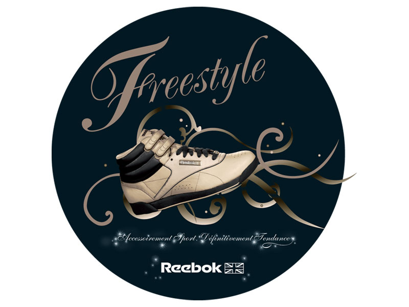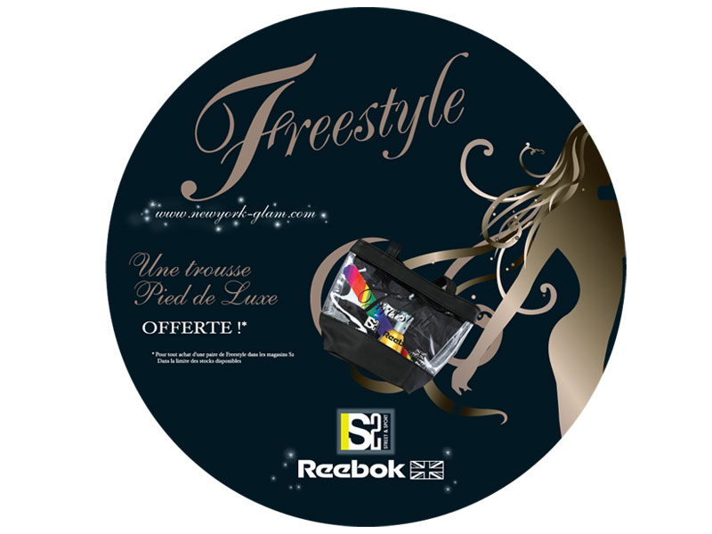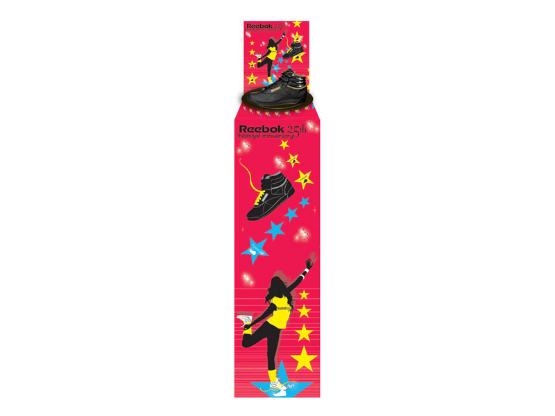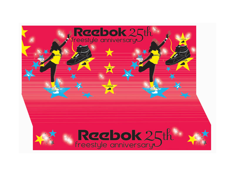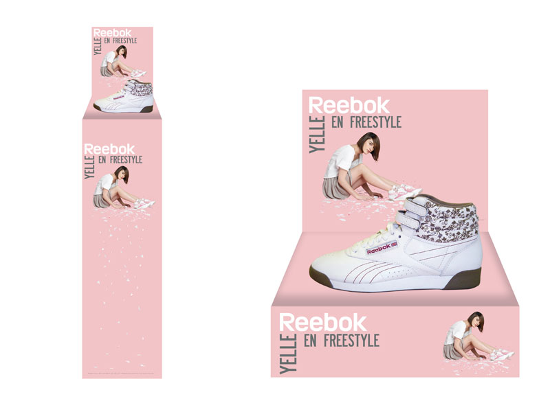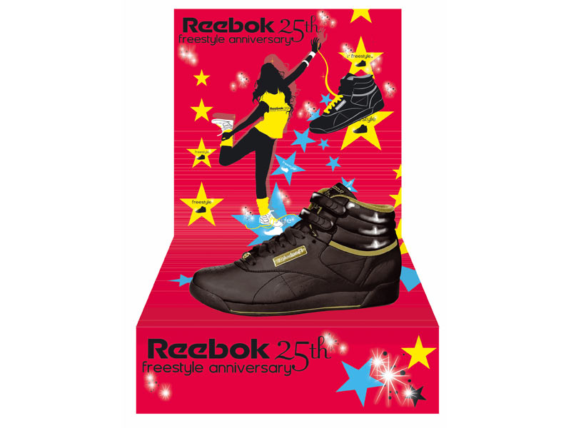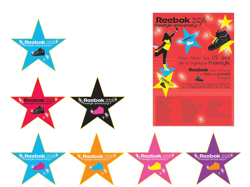 dans le cadre du 25e anniversaire de la Freestyle Reebok, création visuel pour PLV – 3 opérations en France