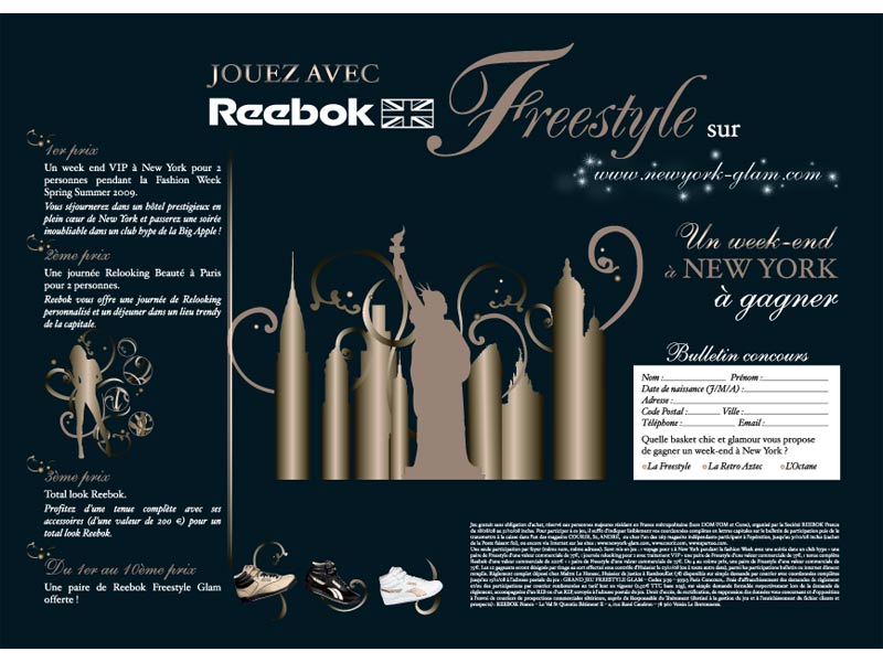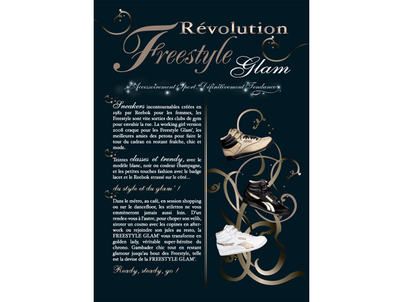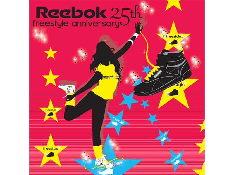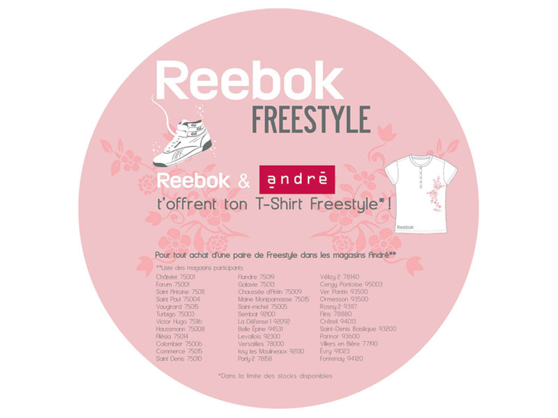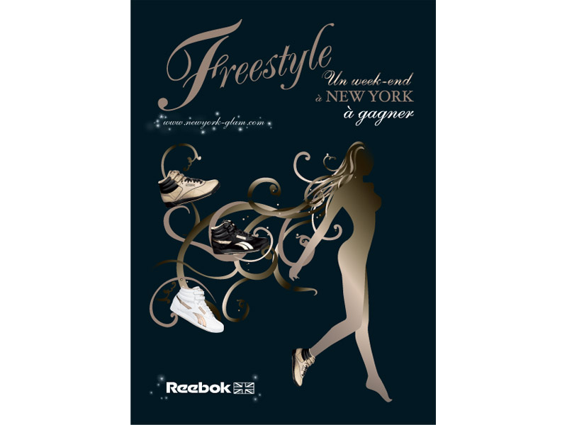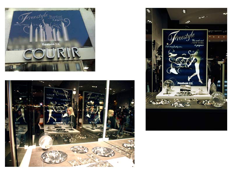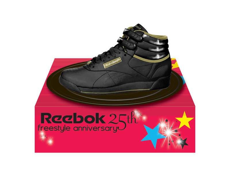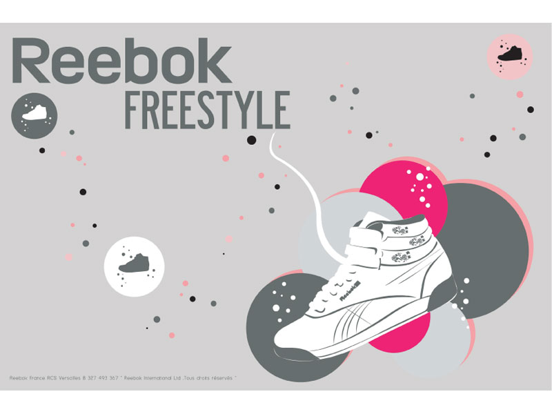 dans le cadre du 25e anniversaire de la Freestyle Reebok, création visuel pour PLV – 3 opérations en France